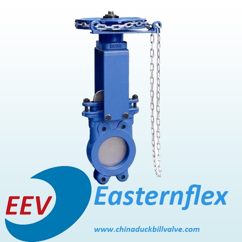 EEV knife gate valve series is designed full bore resilient or metal seated for slurries, powders and sludges. With types flange, wafer, and lugs.